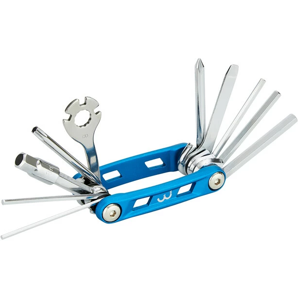 Für alle Radfahrer, denen ihre Werkstatt für unterwegs besonders wichtig ist, hat BBB die PrimeFold Serie im Programm. Das kleine leichte Multitool mit blau eloxiertem Aluminiumgehäuse bietet verchromte Werkzeuge mit 14 verschiedenen Funktionen. Die Beschichtung macht sie robust und Du kannst sie mit noch mehr Kraft einsetzen. Das Multitool ist beidseitig verschraubt und langlebig konstruiert.