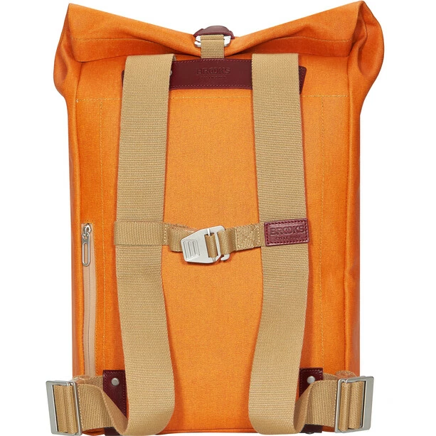 Der Pickwick ist ein großer, vielseitiger Rucksack aus Leinen im Roll-Top-Style. Sein Design verkörpert die Unkompliziertheit des urbanen Radfahrens. Er besteht aus wasserabweisendem Segeltuch (hergestellt in Europa) und original Brooks Lederriemen. Von Brooks designt, wird dieser Rucksack von Kunsthandwerkern in den Hügeln der italienischen Toskana gefertigt.