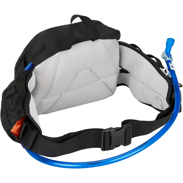 Die Repack LR4 Hüfttasche von CamelBak kommt selbstverständlich mit integriertem Trinksystem. Satte 1,5 Liter finden in dem Crux Lumbar Reservoir Platz. Eine durchdachte Aufteilung bietet reichlich Stauraum für Energieriegel, Werkzeug und Co. Durch die Kompressionsgurte lässt sich das Hippack näher an den Körper bringen, ohne einzuschnüren. Besonders empfehlenswert auch auf dem Trail!
