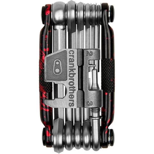 Klein, handlich, funktional und limitiert: Das Multi-17 von Crankbrothers in schwarz ist ein Fahrrad-Multitool mit 17 Werkzeugen aus 6150 High-Tensil Stahl. Am Multi-17 findet ihr viele verschiedene Sechskant-, dazu einen Schlitz- und Kreuzschraubenzieher, Speichen- und Maulschlüssel, Torx 25 und einen Kettennieter, welcher sogar gerissene Ketten wieder verschließen kann.
