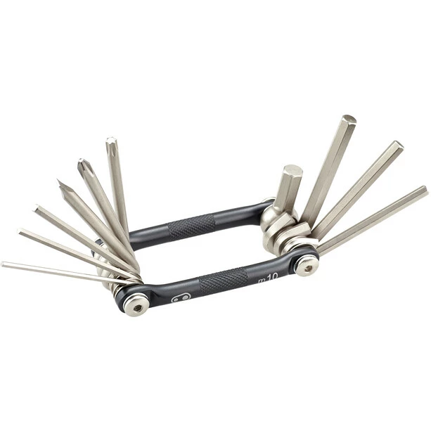 Das Multi 10 Tool ist das ideale Werkzeug für unterwegs. Es kann nicht nur Sechskant-Schrauben, Schlitzschrauben, Kreuzschlitzschrauben und Torx-Schrauben bewegen, es passt auch bequem in jede Trikot-Tasche. Mit seinen robusten Aluminium-Seitenschenkeln hat es eine Super-Figur. Grundsolides Mini Tool mit praxisgerechter Ausstattung und hochwertiger Verarbeitung aus 6150 Stahl mit 6061 Aluminium Seitenteilen.