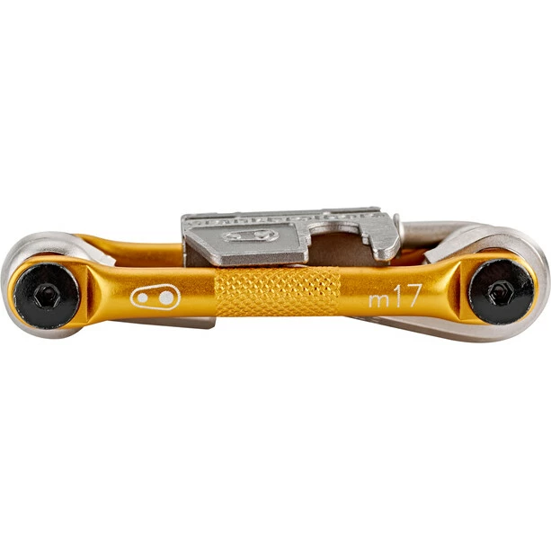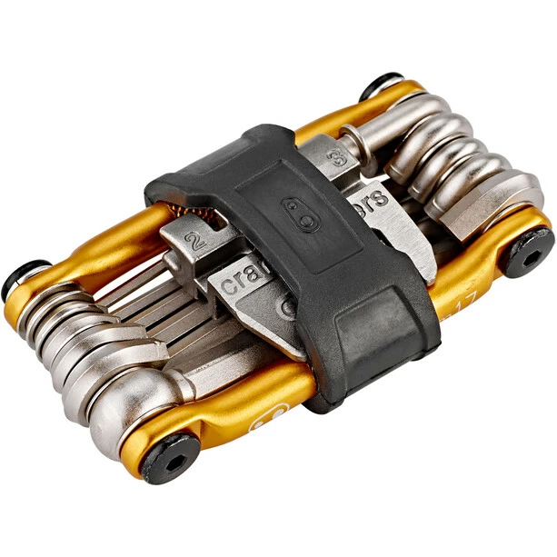 Klein, handlich, funktional und limitiert: Das Multi-17 von Crankbrothers in schwarz ist ein Fahrrad-Multitool mit 17 Werkzeugen aus 6150 High-Tensil Stahl. Am Multi-17 findet ihr viele verschiedene Sechskant-, dazu einen Schlitz- und Kreuzschraubenzieher, Speichen- und Maulschlüssel, Torx 25 und einen Kettennieter, welcher sogar gerissene Ketten wieder verschließen kann.