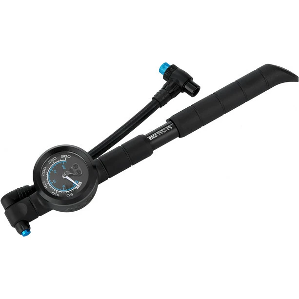 Dämpferpumpe mit 2-stufigem Schrader-Ventilkopf für sicheres Abschrauben ohne Luftverlust. Dank ergonomischem Natural Fit Griff liegt die Pumpe perfekt in der Hand und ermöglicht mit dem Präzisionsmanometer und Luftablass-Ventil eine perfekt Fahrwerkseinstellung.