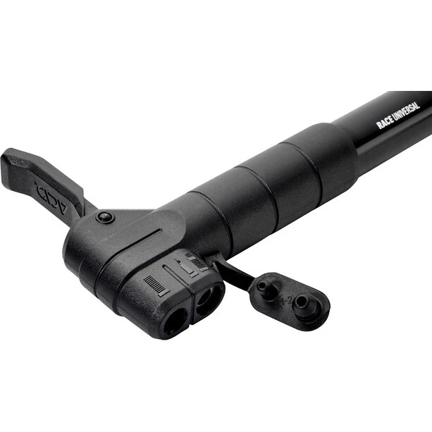 Eine Pumpe für alle Fälle und alle Ventile! Die Race Universal ist mit Presta-, Schrader- und Dunlop-Ventilen kompatibel und sorgt schnell für volle Reifen bis zu einem Druck von 100 psi.