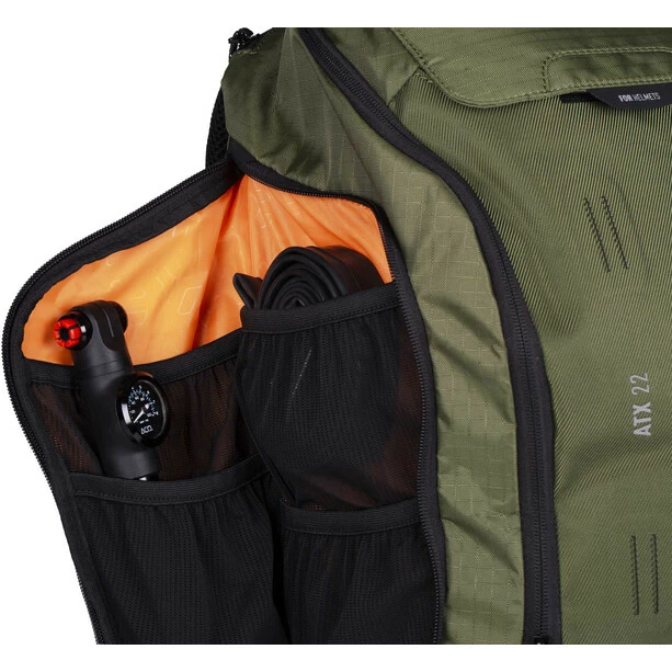Mit den seitlich angebrachten Kompressionsriemen hast du zusätzlich die Möglichkeit, deine Jacke oder Protektoren zu befestigen. Dank sinnvoller Fächeraufteilung, extra Werkzeugfach und Smartphone-Seitenfach sind die wichtigsten Sachen schnell griffbereit. Plus Raincover und Trinkblasenfach … am Rucksack wird die Tour nicht scheitern.