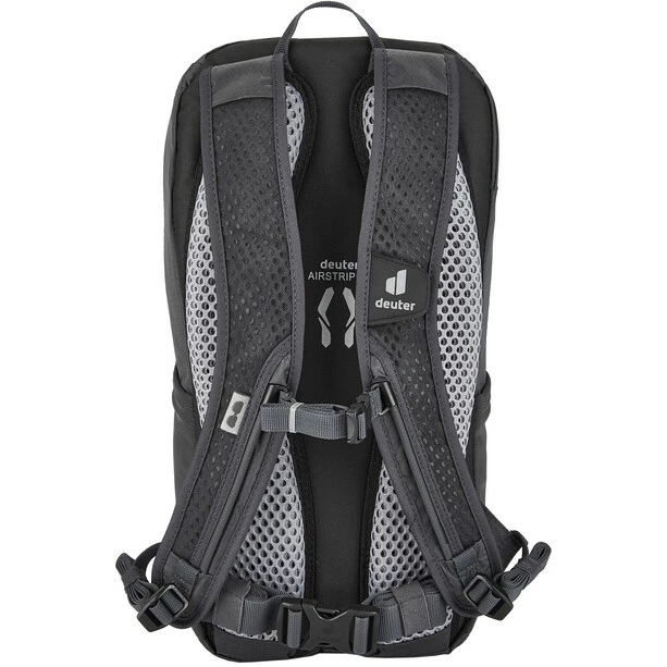 Airstrips-Polster mit Belüftungskanälen garantieren durch ihre geringe Auflagefläche eine freie Luftzirkulation auf über 80 % des Rückens – zugleich sitzt der Rucksack bei allen Bewegungen kompakt und sicher am Rücken.