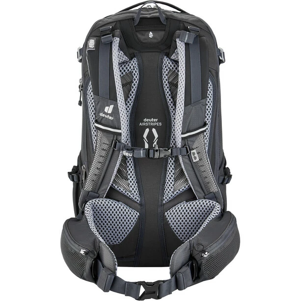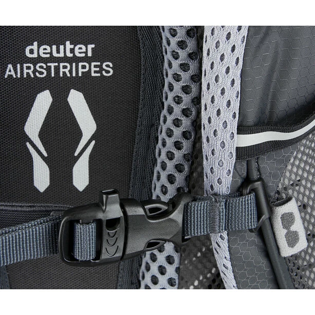 1. Angenehme Belüftung und sicheren Sitz für hohe Fahrsicherheit garantiert das Airstripes System. Der Rucksack sitzt nah und fest am Rücken und kann nicht ausbrechen. Die geringe Rückenauflage der Polster mit Belüftungskanälen sowie der Kamineffekt zwischen den Polstern ermöglichen auf über 80 % des Rückens eine freie Luftzirkulation.