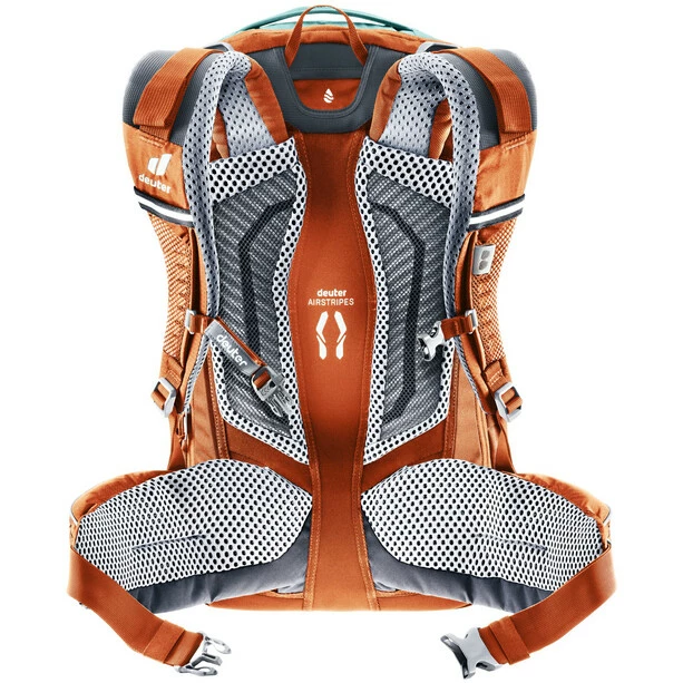 1. Angenehme Belüftung und sicheren Sitz für hohe Fahrsicherheit garantiert das Airstripes System. Der Rucksack sitzt nah und fest am Rücken und kann nicht ausbrechen. Die geringe Rückenauflage der Polster mit Belüftungskanälen sowie der Kamineffekt zwischen den Polstern ermöglichen auf über 80 % des Rückens eine freie Luftzirkulation.