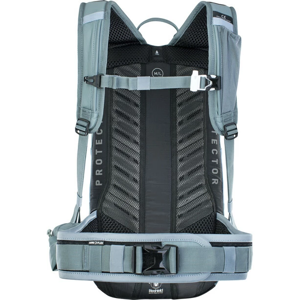 Absolut notwendige Körpernähe eines Rückenprotektors, vereint mit einem Höchstmaß an Belüftung. Der Rückenbereich ist mit einem großen zentralen Belüftungskanal und zwei Reihen „Entlüftungsgittern“ versehen. EVA-Schaum-Streifen mit Belüftungslöchern und einer speziellen, schrägen Giebelfräsung reduzieren die Kontaktfläche zum Rücken und verbessern so die Luftzirkulation. Der extrabreite, ergonomisch geformte Hüftgurt besteht aus AIRO FLEX Material.