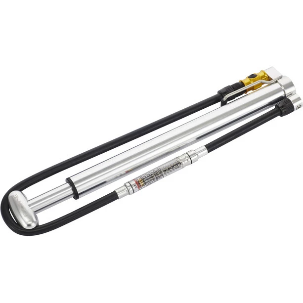 Die Effizienz einer Standluftpumpe in einer sehr kompakten Handpumpe. Leichtes, CNC gefrästes Aluminiumgehäuse, Kolben, Basis und T-Griff, optimiert für Hochdruckanwendungen. Der Fußrastfuß aus Edelstahl stabilisiert die Pumpe während des Gebrauchs. Die HPG-Version verfügt über ein integriertes Druckmessgerät, welche auch in der HP-Version ohne Messgerät erhältlich ist. ABS Wechsel-Gewinde-Ventilspanner ausgestattet.