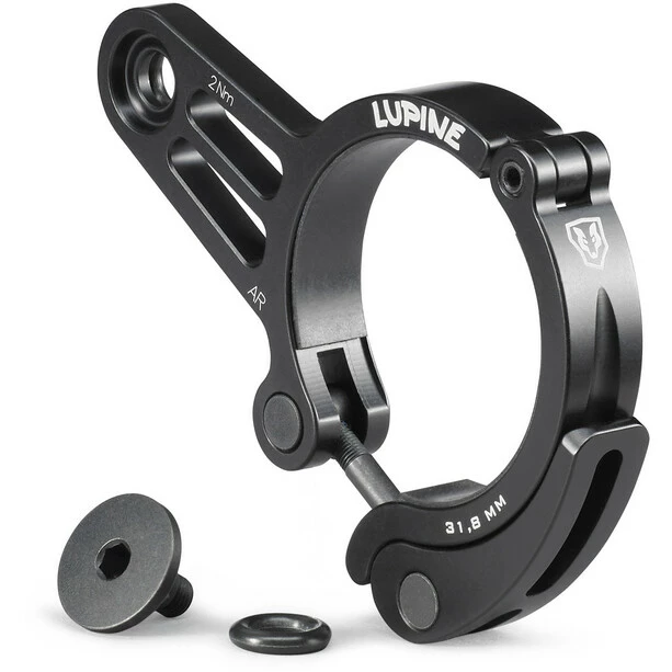 Mit dem Schnellspanner lässt sich die Alpha an passenden Lenkern montieren. Durch den seitlichen Ausleger sitzt die Lampe schön mittig, und bei einer Breite von nur 9 mm nimmt der Halter kaum Platz in Anspruch. Der Schnellspanner ist CNC gefertigt und auch die Bolzen wurden speziell für diesen Zweck aus V4 Stahl gedreht.