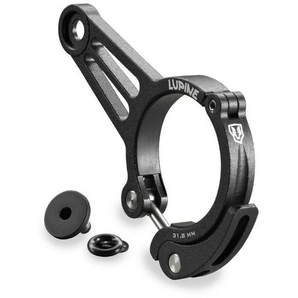 Mit diesem Schnellspanner lässt sich die Betty R an Rohren mit 31,8 mm Durchmesser montieren. Durch den seitlichen Ausleger sitzt die Lampe schön mittig und bei einer Breite von nur 8 mm nimmt der Halter kaum Platz in Anspruch. Der Schnellspanner ist CNC gefertigt und die Bolzen sind aus V4 Stahl gedreht.