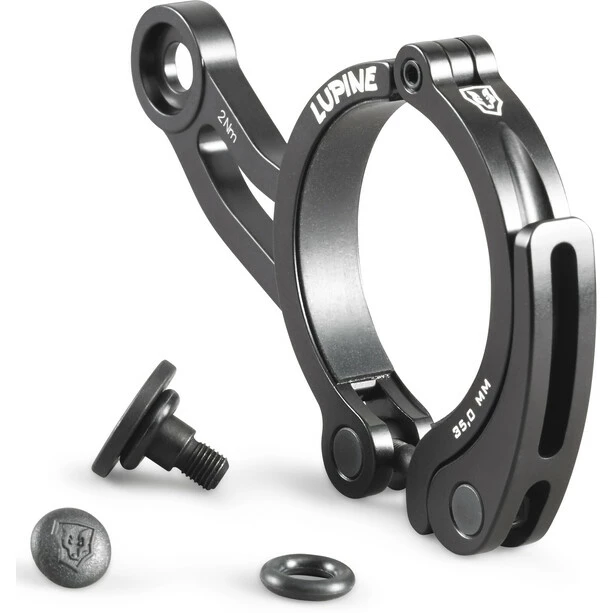 Mit diesem Schnellspanner kann die Lampe an Rohren mit 35 mm Durchmesser befestigt werden. In den CNC-gefrästen Halter ist zum Schutz und zur besseren Haftung eine Gummiauflage eingebettet.