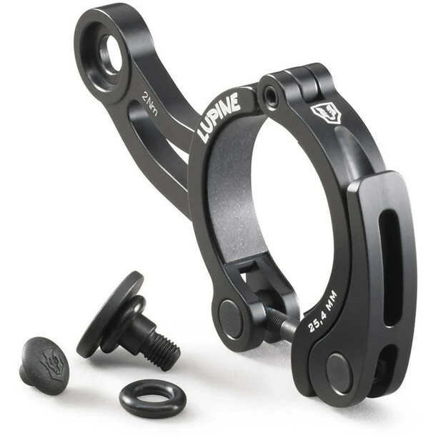 Mit diesem Schnellspanner kann die Lampe an Rohren mit 25,4 mm Durchmesser befestigt werden. In den CNC-gefrästen Halter ist zum Schutz und zur besseren Haftung eine Gummiauflage eingebettet.