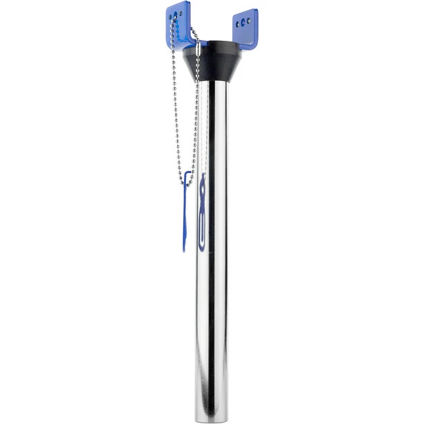 Die DF-1-Dummy Gabel ist ein unentbehrlicher Begleiter für alle Szenarien, bei denen die Gabel vom Fahrrad fallen gelassen werden muss. Sie ermöglicht den vollständigen Ausbau der Gabel, während Lenker, Steuersatzabstandshalter und Bremssattel organisiert bleiben. Die DF-1 wird in den Steuersatz eingebaut und über den Vorbau des Fahrrads in Position gehalten. Der Bremshalter verfügt über Gewinde- und gewindelose Löcher zur Befestigung von Scheibenbremssätteln sowie der meisten Felgenbremssättel, während der mitgelieferte Belagabstandshalter hydraulische Scheibenbremsen vor versehentlichem Einrasten schützt. Der DF-1 ist vernickelt und pulverbeschichtet für eine lange Lebensdauer.