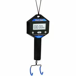 Praktische Digitalwaage zur exakten Gewichtsermittlung von Kompletträdern, Rahmen und Komponenten, die sicher in einen Montageständer geklemmt oder an einem Haken aufgehängt werden kann.