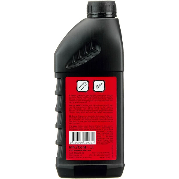 Wähle laut Herstellervorschrift deines Dämpfersystems Damp Champ in der passenden Viskosität von 2.5 WT – 15 WT. Tausche jetzt das alte Öl deines Dämpfersystems gegen dein neues Damp Champ Fluid wie vom Hersteller beschrieben. Erreiche das Maximum mit deinem Dämpfersystem und schmiere die vom Hersteller beschriebenen beweglichen Teile und Dichtungen mit r.s.p. Slick Kick. Damp Champ ist langlebig und schafft höchste Performance für deine Dämpfer. Schütze unsere Umwelt und recycle das Altöl.