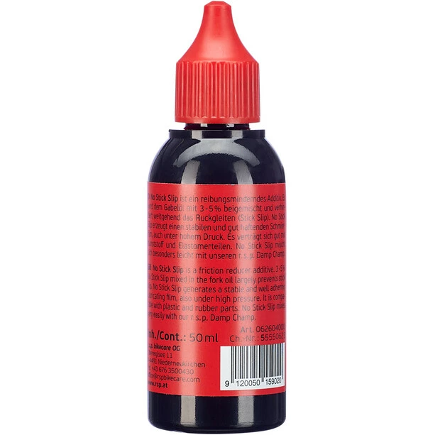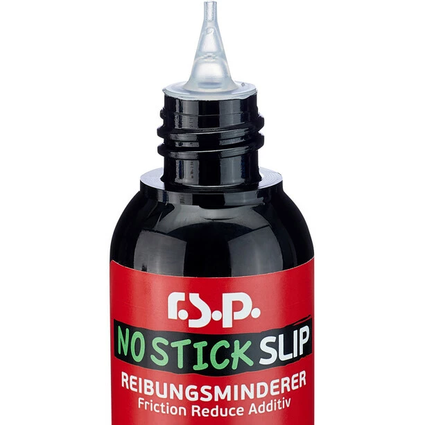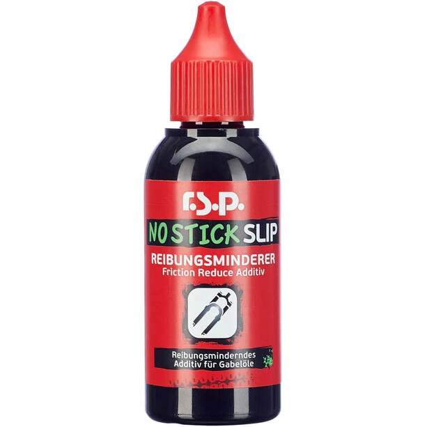 No Stick Slip ist ein reibungsminderndes Additiv. Es wird dem Gabelöl mit 3-5% beigemischt und verhindert weitgehend das Ruckgleiten (Stick Slip). NoStick Slip erzeugt einen stabilen und gut haftenden Schmierfilm, auch unter hohem Druck. Es verträgt sich gut mit Kunststoff und Elastomerteilen. No Stick Slip mischt sich besonders leicht mit r.s.p. Damp Champ.