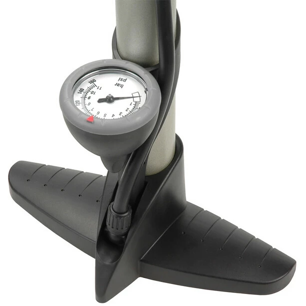 Die solide Standpumpe presst durch den Oversize Zylinder mehr Volumen bei geringerem Kraftaufwand in schlapp gefahrene Reifen. Der Pumpenkopf ist universell und für Auto-, Dunlop-, und französisches (Presta) Ventil einsatzbereit. Ein präzises, gut ablesbares Manometer zeigt das Können der Pumpe in Bar und psi an. Der stabile Standfuß sowie der ergonomische Griff ermöglichen ein sehr komfortables Pumpen.