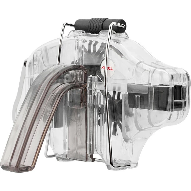 Deine Kette wird es dir mit einer deutlichverlängerten Lebenszeit danken, wenn sie regelmäßig geputzt und gepflegt wird.Das ist leider nicht so einfach, wenn du dich dieser Aufgabe nur mit einemLappen bewaffnet stellst. Mit dem Kettenschweinchen bekommst du auch den Dreckaus den Zwischenräumen in den Kettengliedern – einfach mit flüssigem Kettenreinigerfüllen, die Kette ein paar Mal durchziehen und schon glänzt sie wieder wie neu!Bitte achte darauf, die Kette danach wieder zu schmieren, da dasKettenschweinchen sehr gründlich reinigt und noch die letzten Reste dervorherigen Schmierung entfernt.