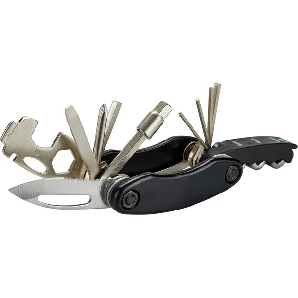 Dieses Minitool solltest du auf deinen Ausfahrten immer dabeihaben. Mit diesem Werkzeug lassen sich die gängigsten Reparaturen, die unterwegs anfallen können, beheben. Auch Flickzeug und Reifenheber für den klassischen Plattfuß sind dabei und alles lässt sich in der kompakten, mitgelieferten Tasche verstauen, die nicht viel Platz wegnimmt.