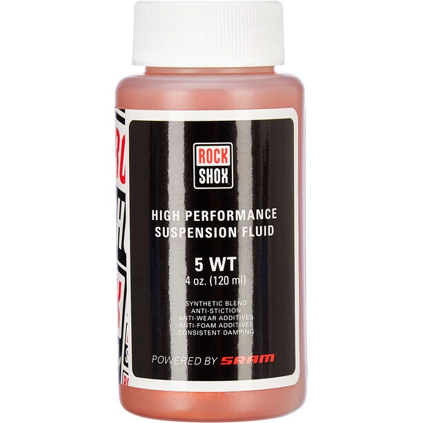 Das Gabelöl ROCKSHOX 5WT 120 ml zur Pflege und Wartung Ihrer Federgabel sorgt für Effizienz und Komfort wie am ersten Tag.
