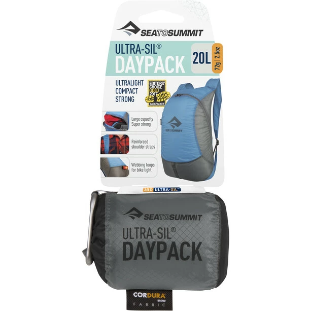 Kompakt, leicht, haltbar und wasserdicht. Der neue Ultra-Sil Ultra Day pack vereint all diese Eigenschaften! Eine tolle Lösung, um Gepäck leicht und trocken zu halten. Er kann in seinem eigenen kleinen Packsack verstaut werden. Doppelt genäht und versiegelt mit high density PU Tape gibt diesem Qualitätsprodukt ein gutes Finish. Der einzigartige, doppelte Hypalon Rollverschluss hält jegliche Feuchtigkeit draußen.