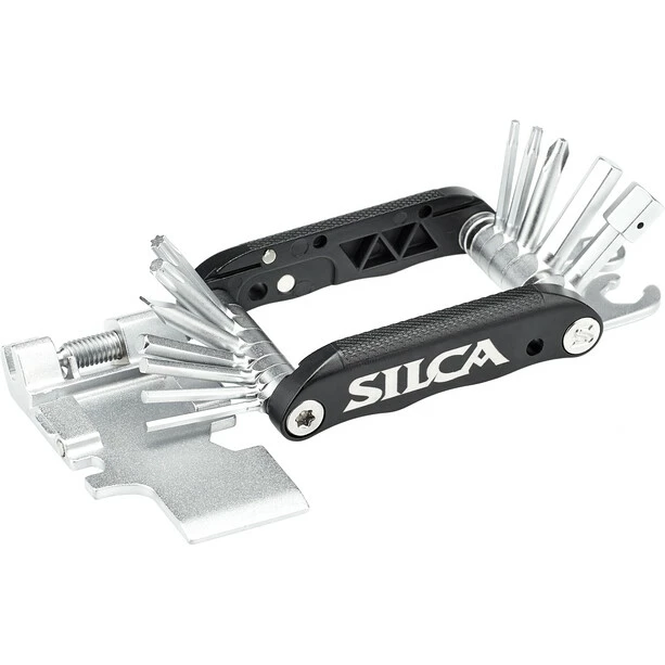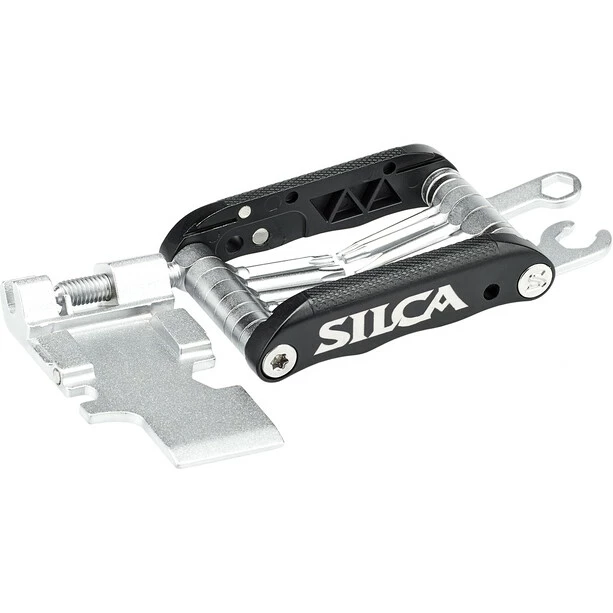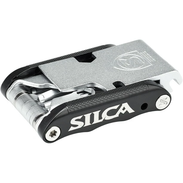 Voilà: das „Italian Army Knive“, die SILCA-typische Interpretation des klassischen Multitools. SILCA hat sich der Dinge angenommen, die an herkömmlichen Multitools nerven und sie in eine Form gebracht, die perfekt in das „EOLO Wallet“ oder die „Seat Roll Premio“ passt. Das „IAK“ kombiniert vollständig geschmiedete, mittellange Werkzeuge mit Aluminiumseiten und komplett rostfreiem Stahl. Das Werkzeugdesign ist ausreichend lang konzipiert, um auch versenkte Elemente zu erreichen, dabei aber kurz genug, um ein Überdrehen zu vermeiden, wie man es von längeren Werkzeugen kennt. Alle Teile sind geschmiedet – eine aufwendigere Fertigungsmethode, die sich auf der Straße aber schnell bezahlt macht! Durch ihre spezielle Konstruktion lassen sich die einzelnen Werkzeuge allesamt nebeneinander platzieren, wodurch die Dicke des IAK um etwa die Hälfte reduziert werden konnte. Doppelt verchromte, rostfreie Tools sowie Buchsen garantieren eine lange Haltbarkeit ohne Korrosion (der Nummer-2-Killer für Multitools, nur getoppt von der Nummer 1 „Verlust“!). Die Aluminiumseitenteile enthalten Magnete aus seltenen Erden, um zusätzlich ein Ersatzkettenschloss aufzunehmen.