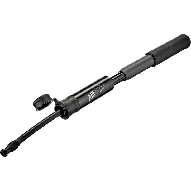 Die SKS Minipumpe AIRFLEX macht das Aufpumpen jetzt noch bequemer. Das Geheimnis verbirgt sich unter der griffigen Staubkappe. Im Rohr der Pumpe befindet sich ein Schlauch, der sich herausziehen und auf SV-Ventile luftdicht aufschrauben lässt. Der flexible Schlauch bietet ausreichend Spielraum beim Pumpen bis 8 bar. Das schont nicht nur das Ventil, sondern auch die Armmuskeln. Für einen guten Grip sorgen der Weichkomponenten-Griff sowie die vordere Griffmulde. Der Materialmix aus Aluminium und Kunststoff-Carbonkomponenten mit SKS-Prägung macht die leichtgewichtige Pumpe zum Must-Have für designbewusste Biker.