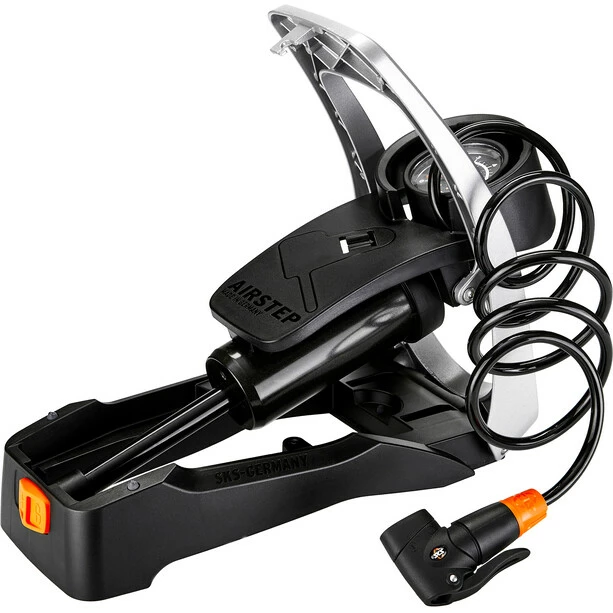 AIRSTEP vereint die Tugenden einer klassischen Fußpumpe mit modernster Technologie „Made in Germany“. Erstklassige Materialien, eine durchdachte Konstruktion und bedienerfreundliche Features wie das große Manometer, den integrierten Stauraum für den Spiralschlauch und den MultiValve-Kopf für alle Ventilarten verschaffen der Pumpe einen völlig neuen, innovativen Auf-Tritt.
