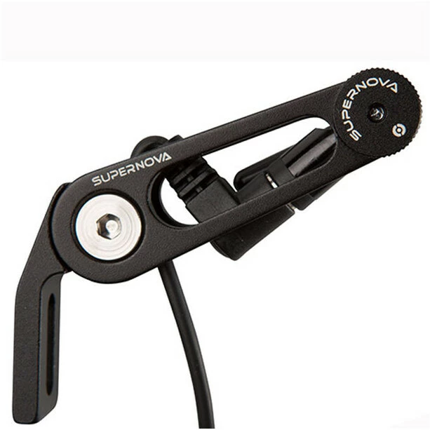 Die neue Airstream Schnellspannbefestigung erlaubt die sichere Montage der Airstream an der Gabelkrone. An einer Steckerbuchse kann bei Bedarf der Rücklichtstecker verstaut werden, wenn man die Airstream vom Rad abnimmt.
