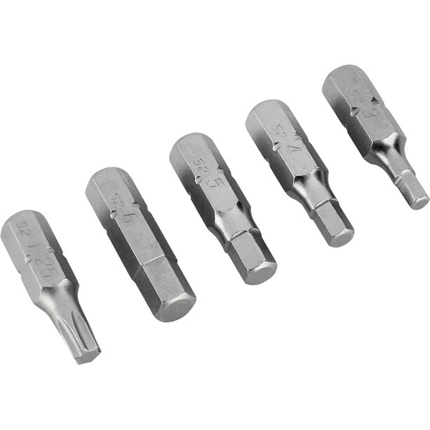 - 5 gehärtete Stahl-Bits mit praktischer Aufbewahrung im Griff.