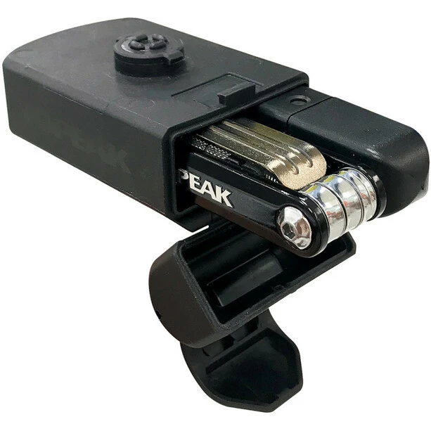 Wird mit der austauschbaren Käfighalterung unter dem Ninja-Wasserflaschenhalter montiert oder mit der Rahmenhalterung allein verwendet. Dieser wetterfeste Werkzeugkasten enthält ein Miniwerkzeug für schlauchlose Reifen mit 11 Funktionen und ein PlugBox-Etui mit 5 Stück 3,5 mm x 5 cm Steckern für Reifenreparaturen und die Wartung von Straßen- oder Trail-Bikes.