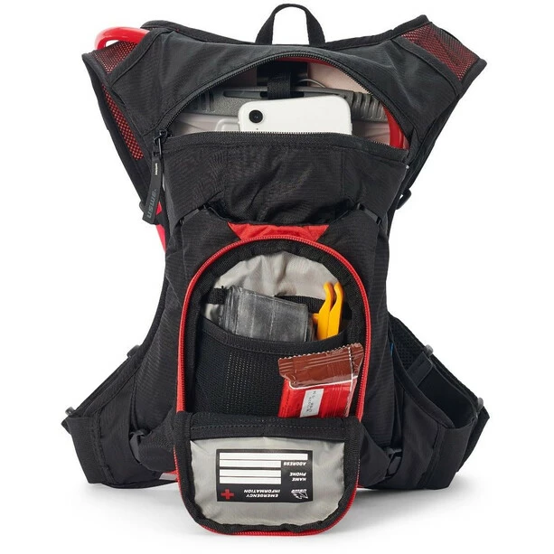 Mit einem Fassungsvermögen von 3 Litern ist er mit einem belüfteten Rückenteil und atmungsaktiven, gepolsterten Schultergurten ausgestattet. Er hat auch mehrere Innentaschen, um den Stauraum zu organisieren, sowie eine große Öffnung. Die Hydrapack Elite-Blase mit 2 Liter Fassungsvermögen ist frei von Bisphenol A und PVC und kann eingefroren oder mit heißem Wasser gefüllt werden. Schließlich ermöglicht ein doppelter Ausgang, die Röhre je nach Wunsch rechts oder links zu positionieren.