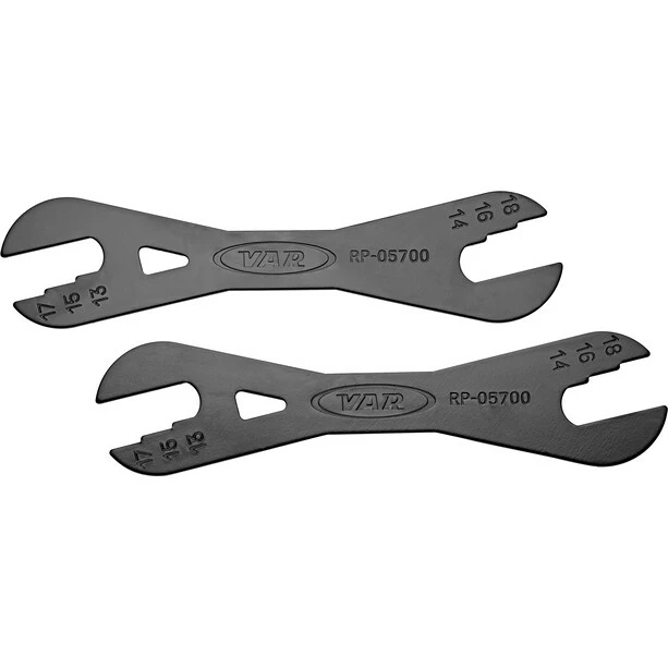 Der VAR RP-05700 Nabenkonusschlüssel eigent sich zum Einstellen von 13, 14, 15, 16, 17, 18 mm-Nabenkonen. Die 2 mm flachen Gabelschlüssel sind mit präzise gefertigten Schlüsselweiten ausgestattet.