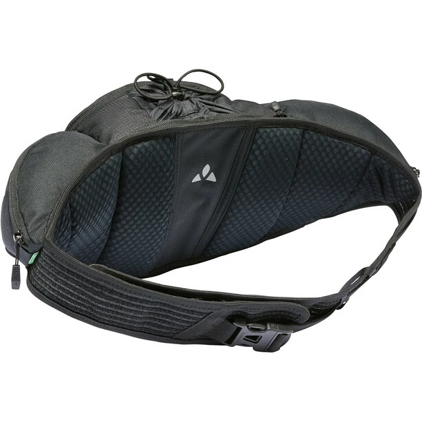 Egal, ob Gravel, Enduro oder Crosscountry: Auf dieses ultimative Accessoire will man nicht mehr verzichten. Die sportlich geschwungene Hüftgurttasche passt sich durch den elastischen Hüftgurt jeder Figur und jeder Fahrlage an. Komfortable Polsterflächen vermeiden Druckpunkte im Rückenbereich. Für eine optimale Gewichtsverteilung wurde der Trinkflaschenhalter mit Staubalg mittig platziert, 2 mit Reißverschluss verschlossene Seitentaschen schmiegen sich perfekt um den Hüfbereich. Herzstück der Tasche bildet das mittlere Frontfach mit seiner ausgeklügelten Aufteilung. Im Frontflap befindet sich ein Mesh-Reißverschlussfach, 2 Steckfächer organisieren das Werkzeug und ein extra für den Ersatzschlauch vorgesehenes Fach sorgt für Ordnung. Zwischen dem gepolsterten Rücken und dem Trinkflaschenfach wurde eine Reißverschluss-Tasche für Wertsachen integriert. Wird die Trinkflaschenhalterung nicht benötigt, findet in ihr auch ein Ersatztrikot oder eine Windjacke Platz. Eine Regenhülle für Schutz vor Schauern und Schmutz sowie ein reflektierender Webbingloop und das reflektierende VAUDE Logo runden dieses Komfortpaket mit 4 l Volumen ab.