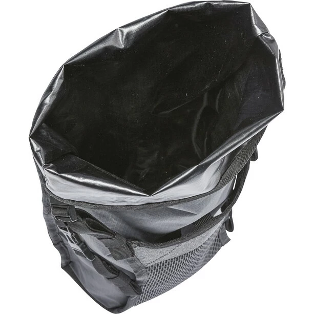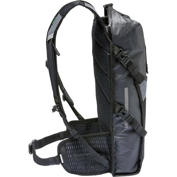 Der Trailpack II ist der flexibelste, wasserdichte Rucksack mit unbegrenztem Einsatzspektrum von Vaude! Er eignet sich genau so fürs Bikepacking wie fürs Graveln oder ist ein leichter Begleiter im urbanen Alltag. Das superkleine Packmaß des Trailpack macht ihn perfekt für die Radreise, wo er fürs Sightseeing aus dem Reisegepäck geholt und danach wieder platzsparend verstaut wird. Auch die nützlichen Details können sich sehen lassen: Der Packsack mit 8 l Volumen ist wasserdicht verschweißt und wird gerollt verschlossen. Er ist mit dem Rücken unten und seitlich verbunden, so dass im Zwischenraum von oben weiteres Gepäck oder eine Trinkblase mit 2 l Volumen verstaut werden kann. Hinter dem Frontflap mit 2 Kompressionsriemen finden ein Helm, eine nasse Jacke oder andere Ausrüstung Platz. Wertgegenstände können in einer kleinen Reißverschluss-Tasche am Rückenteil sicher verwahrt werden. Für Sicherheit in der Dunkelheit sorgen auf der Front und seitlich am Packsack platzierte Reflexdrucke.