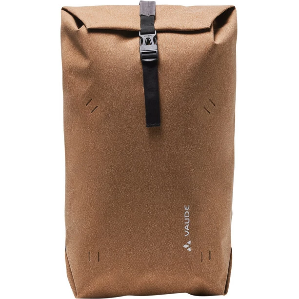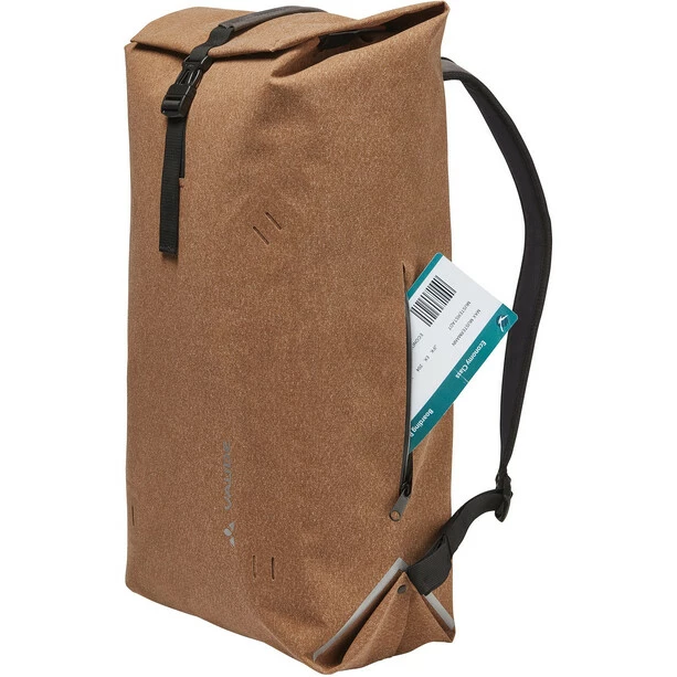 Klassischer Look aus modernsten, nachhaltigen Materialien: der Wolfegg. Ein Rucksack mit ordentlichen 24 l Volumen in sorgfältiger Verarbeitung, Made in Germany. Die ergonomisch geformten Schulterträger wurden aus einer Kombination aus nachhaltigem terracare Leder und natürlichem Stoff aus Hanf und Baumwolle erstellt. Der Packsack selbst besteht aus einem robusten, wasserdichten und schmutzabweisenden Material in textiler Optik, hat dekoraktive reflektierende Aufdrucke und einen Deckelgriff. An den raffinierten Ausstanzungen auf der Vorderseite kann Zusätzliches befestigt werden – wie z. B. Blinkies, kleine Karabiner oder die eigens dafür entwickelte Schultertasche namens „Egg“, die optional von VAUDE angeboten wird. Dieser Rucksack hat es aber auch in sich: im großen Hauptfach befindet sich ein herausnehmbarer, wattierter Organizer, in dem Tablet, Stifte und Unterlagen übersichtlich und sicher geschützt verwahrt sind – auch wenn der Wolfegg nach Feierabend noch für den Wochenendeinkauf herhalten muss. Das Laptop (bis 15.6″) findet im separaten Laptopfach Platz und auch der Schlüssel ist durch den leicht erreichbaren Schlüsselhalter immer griffbereit. Handy und Geldbeutel sind im seitlichen Reißverschlussfach schnell gefunden.
