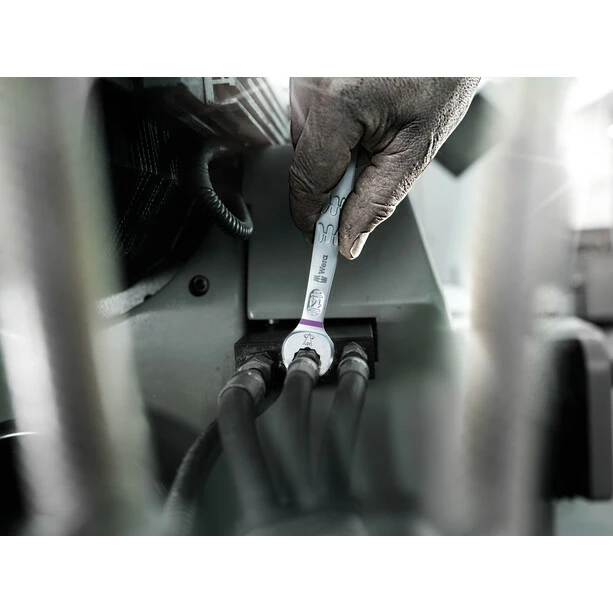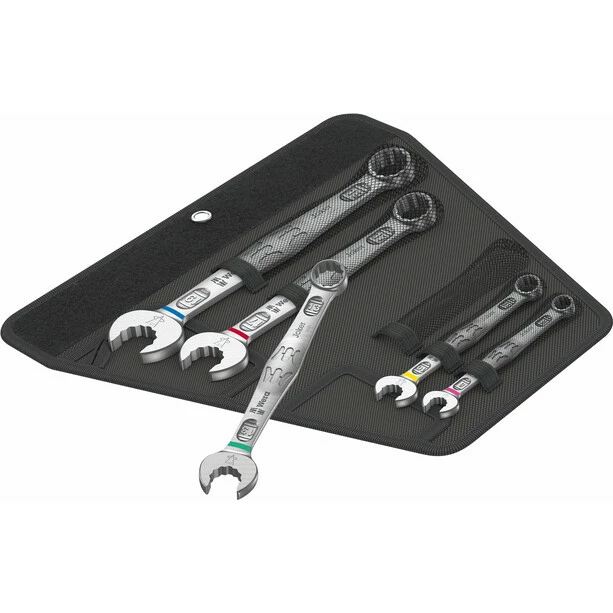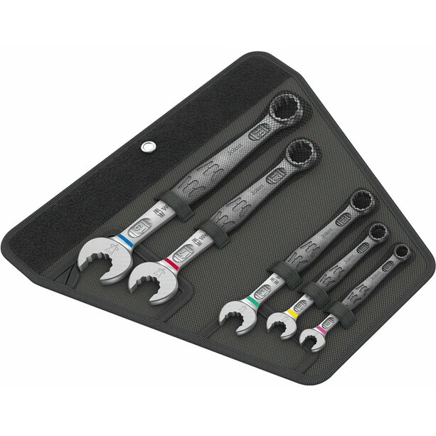 Da die Bauräume bei Schraubarbeiten immer enger werden, sind Werkzeuge notwendig, mit denen die Anwender auch in solchen Situationen erfolgreich arbeiten können. Enge Bauräume erfordern zusätzliche Ansetzpunkte des Werkzeugs. Lassen sich also Maulschlüssel derart modifizieren, dass sich die Ansetzmöglichkeiten des Werkzeugs erhöhen? Durch die Kombination des um 7,5° geschwenkten Mauls und die Doppelsechskantgeometrie wird eine Verdopplung der Ansetzpunkte erzielt. Bei einer wiederholten 180°-Drehung des Schlüssels um die Längsachse während des Schraubens gibt es vier Ansetzmöglichkeiten und Muttern bzw. Schraubenköpfe können alle 15° „gepackt“ werden. Der Joker 6003 mit seiner pfiffigen Maulgeometrie erweitert das Anwenderspektrum in engen Bauräumen deutlich. Den jeweiligen Ansetzpunkt findet der Joker 6003 nach jedem Wenden sozusagen von selbst. Die schlanke und dennoch robuste Ringseite ist um 15° zur Werkzeugachse abgewinkelt. Durch die hochwertige Oberflächenvergütung wird ein hoher und lang anhaltender Korrosionsschutz erzielt. Mit Werkzeugfinder Take it easy: Farbkennzeichnung nach Größen. Die Joker Taschen sind durch das Klettsystem auf der Rückseite zur Befestigung an Wand, Regal, Werkstattwagen und am Wera 2go System geeignet.