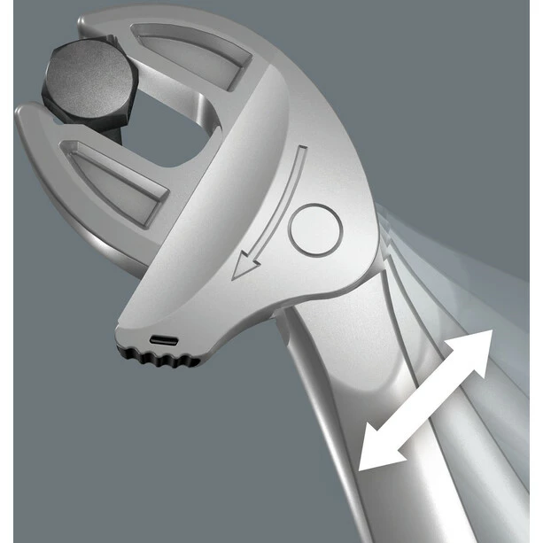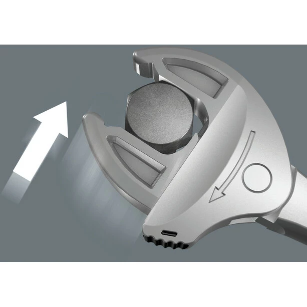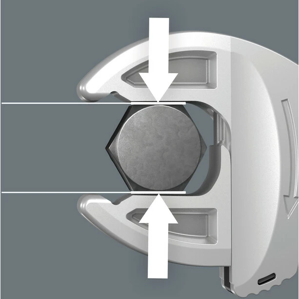 Viele Anwender wünschen sich ein universelles Schraubwerkzeug mit möglichst großem Einsatzspektrum. Ein einziges Werkzeug für mehrere metrische und zöllige Abmessungen sollte es sein. Es sollte sich automatisch auf die unterschiedlichen Schraubengrößen einstellen. Sicher zupacken, nichts beschädigen und eine hohe Arbeitsgeschwindigkeit ermöglichen. Durch die stufenlos und parallel geführten Backen werden mehrere Maulschlüssel-Einzelabmessungen ersetzt. Die benötigte Größe stellt sich beim Ansetzen an der Sechskant-Mutter oder -Schraube stufenlos von selbst ein. Der integrierte Hebelmechanismus klemmt die Sechskant-Schraube bzw. -Mutter zwischen den Backen sicher ein, was die Gefahr des Abrutschens und der Beschädigungen deutlich verringert. Für das schnelle und durchgängige Schrauben ohne Absetzen sorgt die Ratschenfunktion. Durch die Nutzung der Eckweiten-Prismen ist ein Rückschwenkwinkel von nur 30° realisierbar. Die Ein-Schenkel-Konstruktion in Verbindung mit der Ratschenfunktion und dem Eckweitenprisma ermöglicht das Arbeiten auch in engen Bauräumen. Der verstellbare Joker 6004 ist das universelle Schraubwerkzeug. Selbstjustierend. Zupackend. Ratschend.