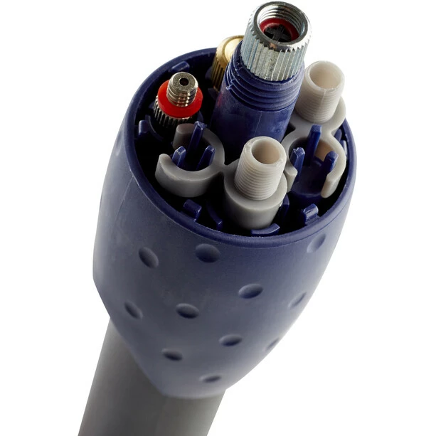 Zefals Max Luftpumpe ist ein wahres Multitalent. Mit dieser Pumpe kann man nicht nur sein Fahrrad aufpumpen, sondern im Inneren des Griffes findet man noch weitere Aufsätze wie z.B. eine Ballnadel oder ein Ventil für Luftmatratzen.
